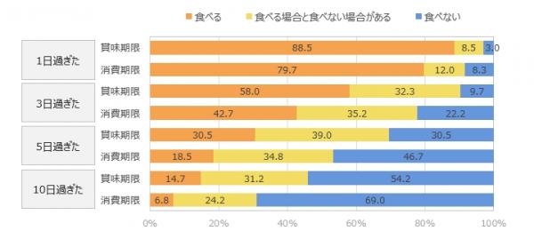 ■【消費期限切れ】1日過ぎたら79.7%、5日過ぎても18.5%が「食べる」 n=600