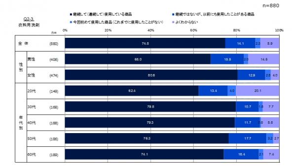 ■【衣料用洗剤】は74.8%が同じ商品を継続して(連続して)使用 n=880
