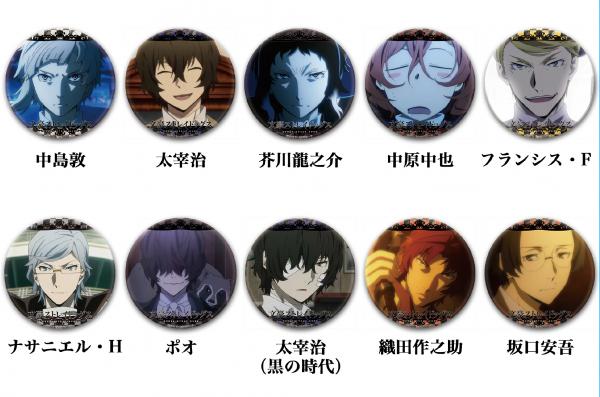 直径75mmの大きな缶バッチに「文豪ストレイドッグス」のキャラクターをフルカラーでプリントしました。