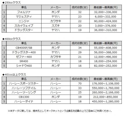 今後もオークネットでは、モーターサイクル市場での成約ランキングのほか、様々な注目度の高い情報を発信して参ります。