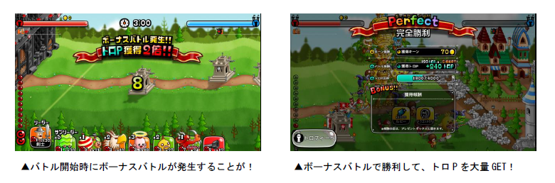 バトルを開始すると「ボーナスバトル」が発生することがあり、バトルの勝敗に関係なく、獲得トロPが