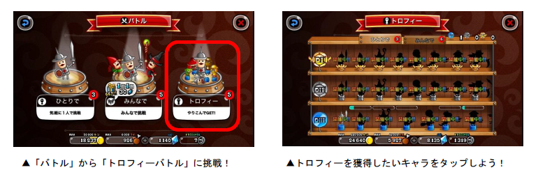 「トロフィーバトル」は、各キャラのトロフィー獲得を目指して、全国のプレイヤーとバトルを