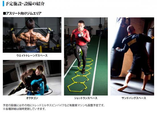 「アスリート向けジムエリア」「レッスンスタジオエリア」が併設。