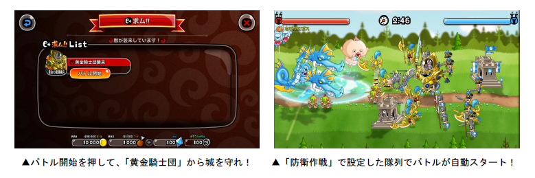 タップすると「防衛作戦」を使用して「黄金騎士団」を自動で迎え撃ちます。襲来イベントに敗北、