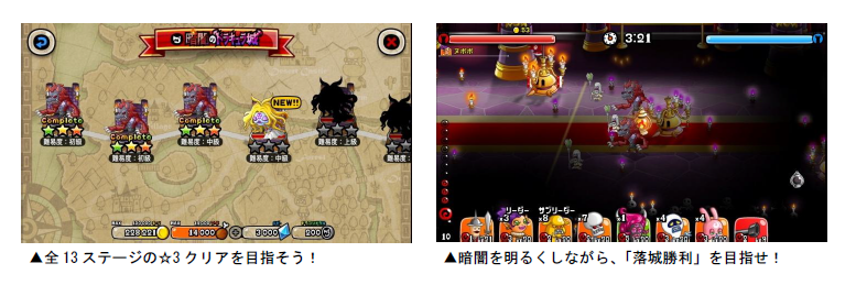 敵の城を落城させないとステージクリアとならない特別ルールとなっています。「みんなで」1日3回まで、