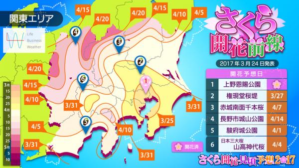 この先は、福岡と横浜で3月25日、熊谷で3月27日など、九州・四国・関東を中心に開花の便りが続々と届きそうです。