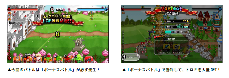 発生します。ボーナスバトルではバトルの勝敗に関係なく、獲得トロP が2・3・5・10倍のうちいずれかの
