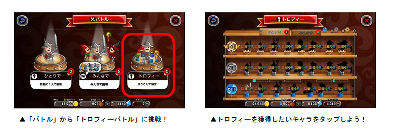 バトルを行う「トロフィーバトル」も同時開催いたします。ひとりではもちろん、目の前にいる友達や