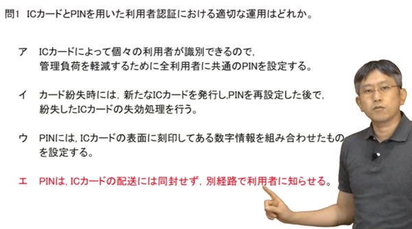 の講座では、情報セキュリティマネジメント試験の過去問を解説しています。