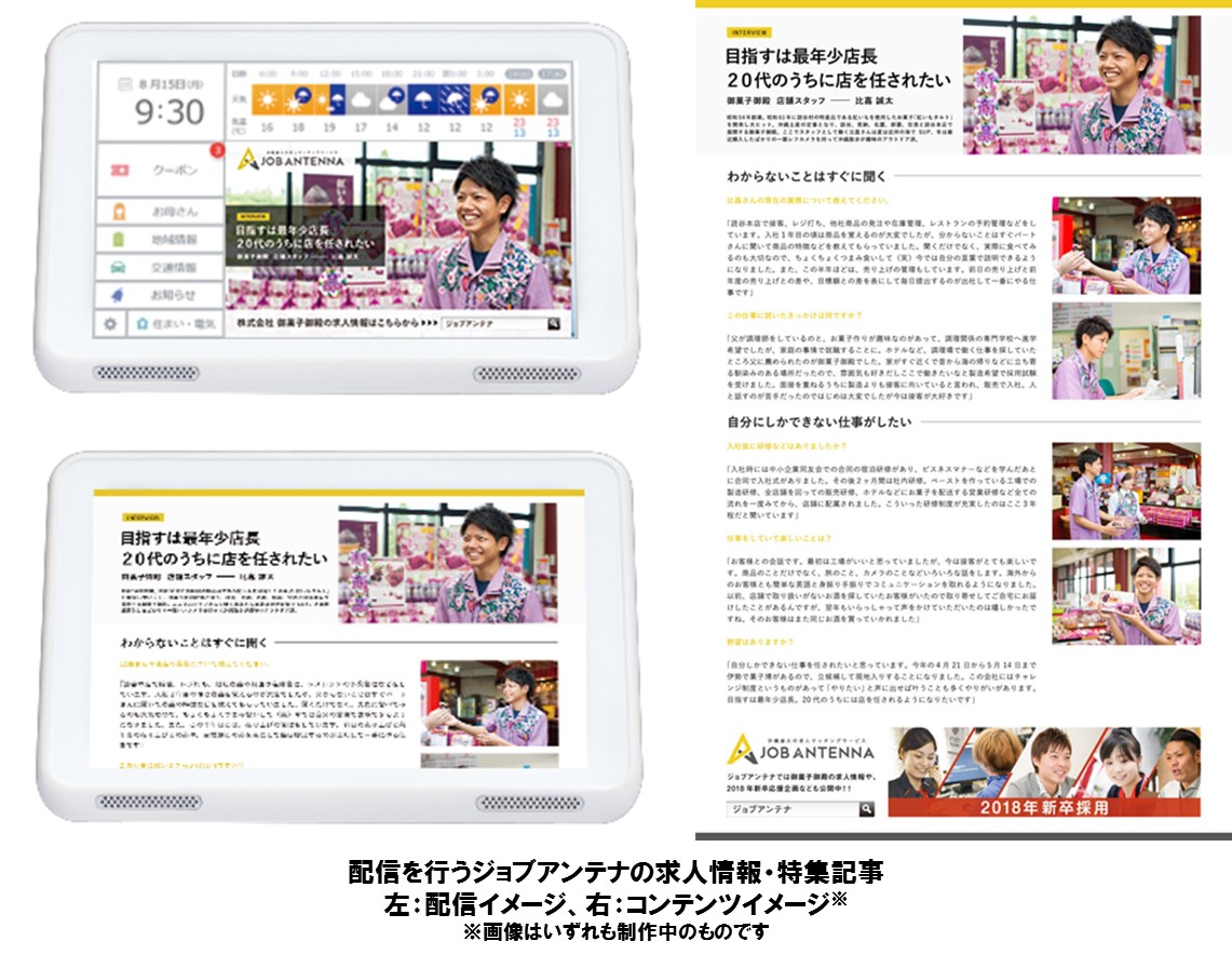 この度、「Tステーション」端末に対し、求人サービス「ジョブアンテナ」に掲載されている新着の求人情報や、「沖縄経済メディア」の掲載記事などの配信を開始します。自宅のリビングで座って読む形態と親和性の高い、深みのあるコンテンツを「Tステーション」ユーザーに提供することで、県内の中年世代を中心とした家族層や新聞の非購読者層をターゲットとして取り込み、県内企業とのマッチングの推進や沖縄経済の魅力拡散を目指します。