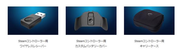 従来のコントローラーではプレイを想定していなかったFPSやシミュレーションゲーム、MOBAをはじめとした全てのSteamゲームのプレイが可能になり、個々のカスタマイズ設定にも優れたSteamコントローラーは、発売以来世界中で人気を博しています。日本国内でも昨年11月に発売して以来、多くのお客様に好評いただいております。そのSteamコントローラーのアクセサリーとして、交換・追加用のワイヤレスレシーバー「Steamコントローラー用 ワイヤレスレシーバー」、通常のバッテリーカバーとは異なり、ワイヤレスレシーバーが収納できる「Steamコントローラー用 カスタムバッテリーカバー」、Steamコントローラーを安全に持ち運ぶための専用ケース「Steamコントローラー用 キャリーケース」、Steamコントローラーカスタマイズ用の専用スキン「Aperture」、「CSGO ブルー カモ」、「CSGO ブルー オレンジ」、「CSGO グレー カモ」をラインアップ。2017年3月31日より順次取り扱いを開始いたします。
