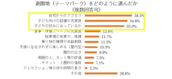 初めての遊園地を選ぶ際の選択基準について調査してみると、3割以上の方が「自宅からのアクセス」「子ども向け施設の充実度」「子どもの好みとの一致」を挙げ、他の選択肢に比べて重視していることが分かりました。パパママたちは子どもがいかに楽しめて快適に過ごせるかを重点的に考えているといえそうです。