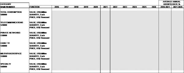 ● Specialty (intra-enclosure, test and measurement, rental units, harsh environment industrial, bio-photonics, sensors, laboratory, manufacturing/production of fiber optic components/devices, other applications, and non-specific uses)