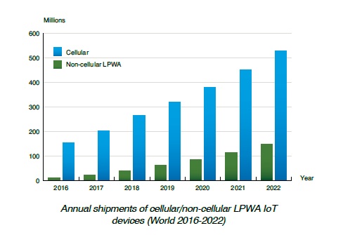 セルラーと省電力広域無線技術(LPWA)対応モノのインターネット(IoT)デバイスのエコシステム