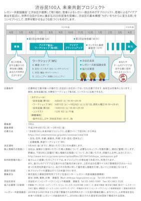 このたび、レガシー共創協議会は、渋谷区と共催で、若者から渋谷区の未来のまちづくりアイデアを募集し、企業などとの連携を図りながらその実現を目指す「渋谷民100人未来共創プロジェクト」を開始します。本取り組みは、若者に焦点を当て、単にアイデア募集をするだけでなく、地方自治体(渋谷区)および企業など(レガシー共創協議会会員)との連携を通じて、その具体化までを一貫して目指すオープンイノベーションプロジェクトです。渋谷区の基本構想である「ちがいをちからに」をコンセプトとし、2020年に世界を驚かせるようなアイデア創出や、その実現を目指します。