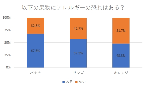 調査の結果、バナナでも1/3、オレンジでは半分を超える方がアレルギーの恐れはない、と理解していることが分かりました。