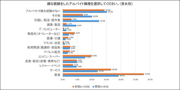 図表参照:【図11】嫌な経験をしたアルバイト職種を選択してください。(男女別)