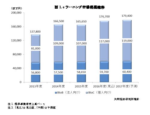 本調査におけるeラーニング市場とはインターネット等のネットワークを利用した学習形態を対象とし、ゲーム機やパソコン向けソフトウェアを利用したものを除く。また学習コンテンツとしては、ビジネス、教科学習、語学、IT技術、資格取得、教養・雑学など幅広いジャンルを含む。
