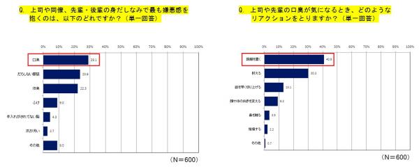 また、同調査によれば、上司や同僚の身だしなみで最も嫌悪感を抱くことの1位に「口臭」があげられ、