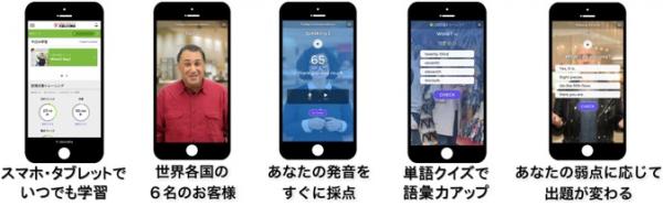 政府は2020年までに訪日外国人旅行者数を4000万人とすることを目標としており、接客現場に英語力を求める声はますます高まっています。そうした背景を受け、旺文社は「英語応対能力検定」※2 公認eラーニング教材『とにかくひとこと英語応対講座』を発売いたします。接客現場に即した英語を、動画とクイズをベースにしたカリキュラムで、スマホを使っていつでも繰り返し学習できる、効果的なeラーニング教材です。この度発売される「販売コース」は、百貨店や小売店等で働く方々を対象としています。
