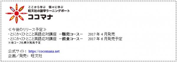 旺文社は、『とにかくひとこと英語応対講座-販売コース-』の発売に伴い、社会人向け語学eラーニングブランド「ココマナ」をリリースします。忙しい社会人が語学学習への一歩を踏み出し、いつでも戻ってこられる港(ポート)のような学習サービスを目指します。