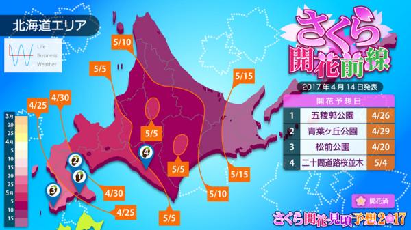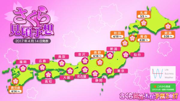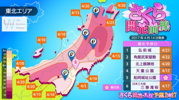 “東・西日本は今週末でさくら見納め 東北北部・道南は大型連休に見頃”