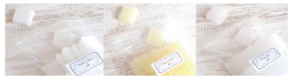 (3)ワックス(パラフィンブレンドタイプ)…複数の高純度パラフィンをブレンドした、半透明のワックス。