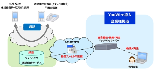 このたびのソフトバンクの「通話録音サービス」との連携により、法人企業様でご利用のソフトバンクの携帯電話(ガラケー)、iPhone、スマートフォン(Android)の全通話録音が可能となりました。