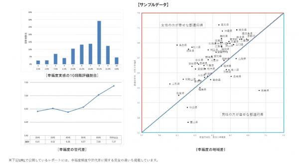 本レポートでは、調査結果の幸福度を「性別」「世代」「都道府県」別に集計し分析したほか、地方創生による「しあわせ格差」の解消可能性についての見解をまとめました。