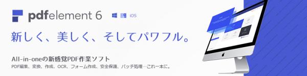 ・「PDFelement 6」シリーズは、PDF編集、変換、作成、フォーム作成、安全保護、電子署名など、PDFに関する作業ニーズを一本にまとめ、All-in-oneのPDF作業ソフトです。