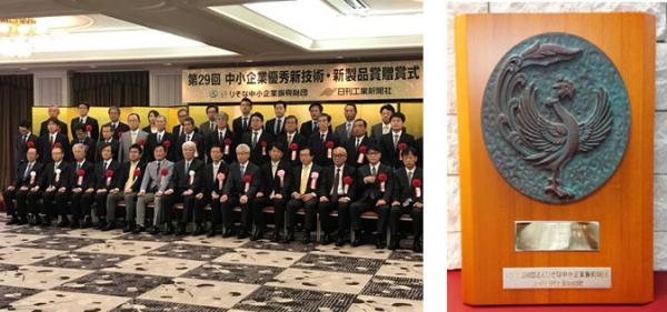「中小企業優秀新技術・新製品賞」は公益財団法人りそな中小企業振興財団と日刊工業新聞社の主催、経済産業省中小企業庁後援で、中小企業の技術の振興を図り、我が国産業の発展に寄与することを目的に中小企業が開発した、優れた「新技術・新製品」と「新ソフトウエア」を毎年表彰しており、今年で29回目となります。
