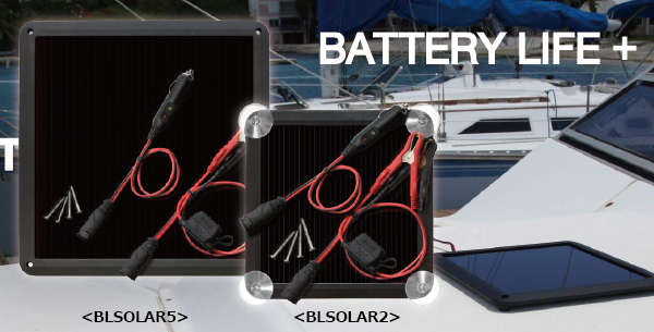 Battery Lifeシリーズ、『BLSOLAR2』と『BLSOLAR5』は、光エネルギーを利用してバッテリーを補充電することができる、ソーラーパネルを搭載したバッテリーメンテナンスアクセサリーです。利用頻度が少ない車両のバッテリーに使用することで、バッテリー上がりを抑制するだけでなく、バッテリーの寿命やECO機能を向上させることができます。
