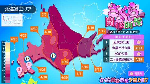“開花前線はいよいよ北海道に到達!東北北部~道南・道央は大型連休に見頃”