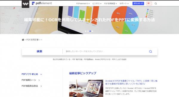 自社製品「PDFelement 6」の紹介、販売のみではなく、新サイトではPDFに関する情報も用意しています。PDF作業の小技を紹介するオリジナル記事や、PDFelement 6のガイド動画など、現在「PDF活用教室」カテゴリーではすでに100件以上のコンテンツページがリリースされています。