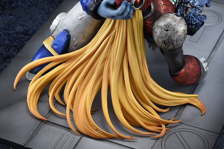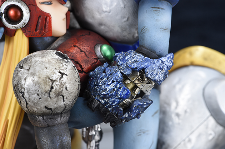 ゼロの装甲部はシグマステージ前半を一人で駆け抜け、VAVAとの死闘後をイメージ。エックスを守るための自爆によって剥き出しになったメカ部分等はもちろん、エックスの無事を確認し、友の腕の中で安堵して眠る表情までも再現。