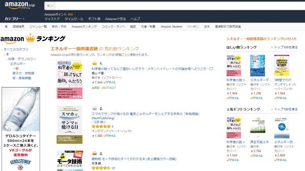 Amazonベストセラーランキング(エネルギー一般部門)にて2位を記録しました 4月20日