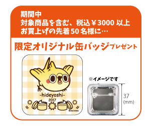 対象商品を含む、税込¥3000以上お買い上げの先着50名様に、オリジナル缶バッジをプレゼント。こちらは非売品となり、コレクション要素もファン必見のアイテムとなっております。