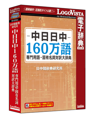 ロゴヴィスタ株式会社は、パソコン用電子辞典において絶対なる信頼と実績を誇るベストセラー「LogoVista電子辞典シリーズ」の新作として、Windows版および、Macintosh版『中日日中160万語専門用語・固有名詞対訳大辞典』を、2017年5月26日(金)よりパソコンショップ、カメラ系量販店、大手書店、ダウンロード販売サイトなどで発売いたします。