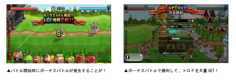 また、バトルを開始すると「ボーナスバトル」が発生することがあり、バトルの勝敗に関係なく、獲得トロPが