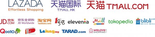 ・LAZADA、TMALL、JD.COM、Taobao、The Store、elevenia、MATAHARI Mall、tokopedia、blibli、Qoo10、11ST、Lelong、TARAD、We LOVE SHOPPING