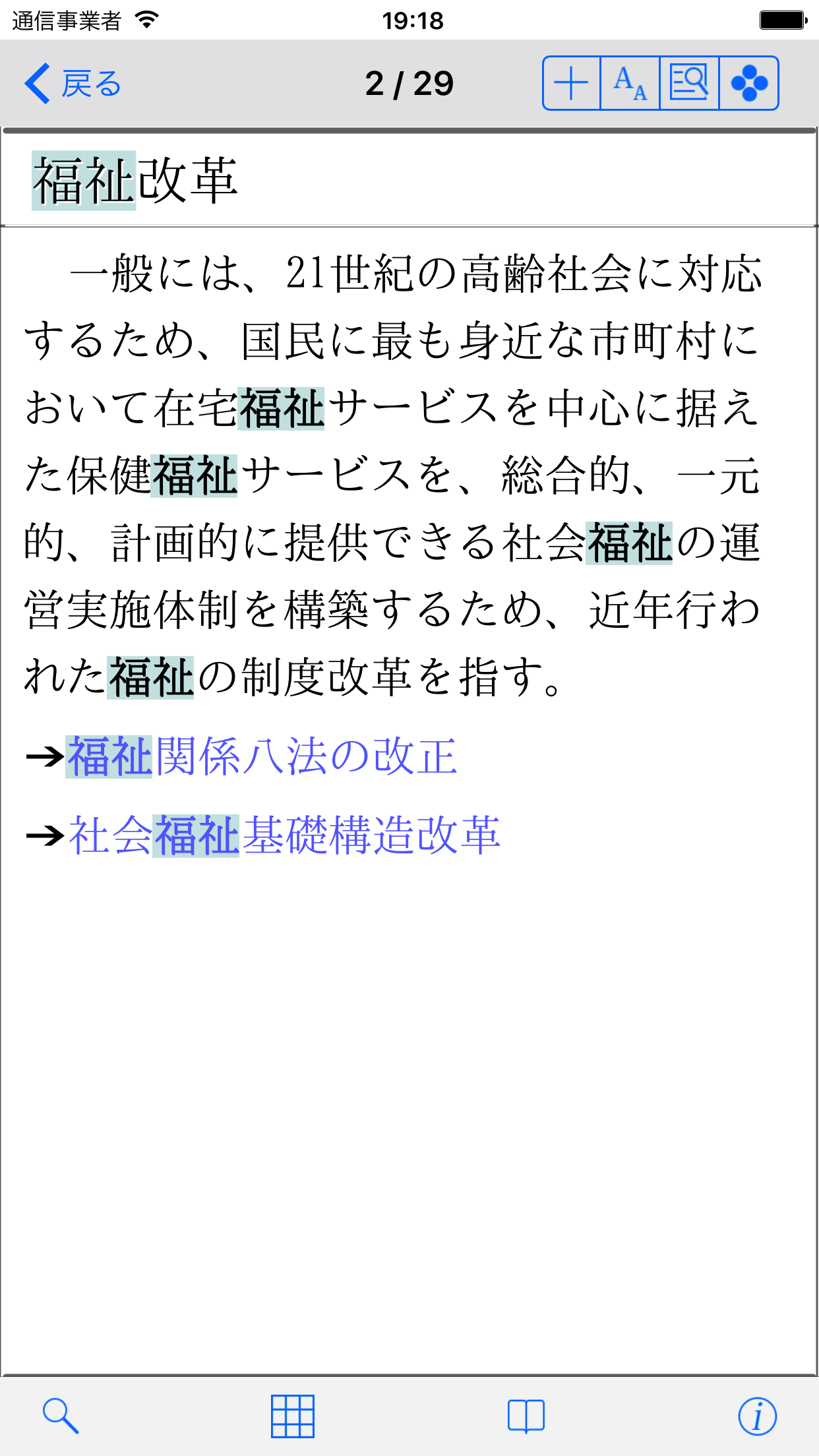 ●本文中の用語をなぞることで次々に辞書引きができるジャンプ検索機能。