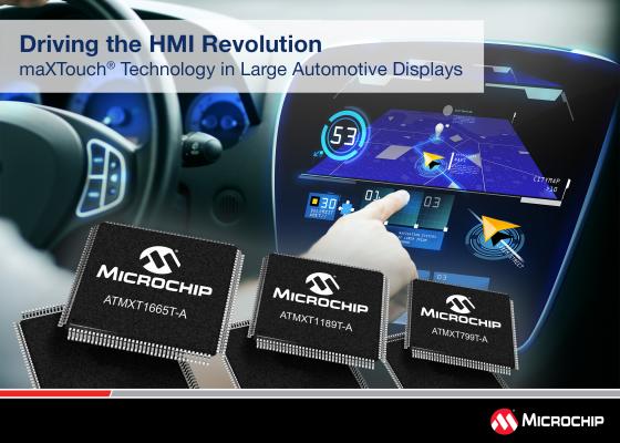[NASDAQ: MCHP] - マイクロコントローラ、ミックスドシグナル、アナログ、Flash-IPソリューションのトッププロバイダであるMicrochip Technology Inc.(日本支社: 東京都港区浜松町、代表: 吉田洋介 以下Microchip社)は本日、maXTouch(R)タッチスクリーン コントローラの新ファミリを発表しました。MXT1665T-Aファミリは大画面の車載ヒューマンマシン インターフェイス(HMI)設計に向けた車載グレードのタッチスクリーン コントローラです。このコントローラを使うと、8~15インチの画面でスマートフォン同様のマルチタッチHMIを提供できます。