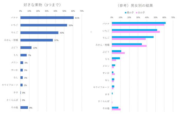男女ともにバナナ・いちご・りんごの3種類が人気を集めました。