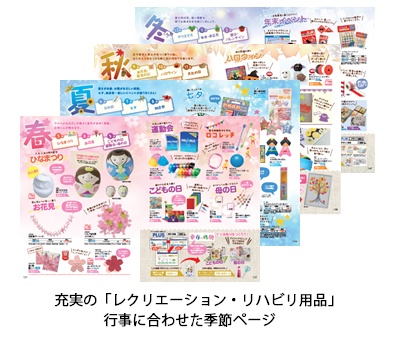 お客様からのご要望が最も多かった文具・生活用品を拡充し、人気商品約370アイテムをプライスダウン。また、人気のレクリエーション・リハビリ用品は440アイテム増の2,360アイテムと充実しました。掲載総数は約18,000アイテム。別途WEBでも約133,000アイテムと扱い点数を大幅にアップしています。