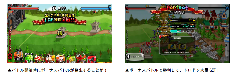 また、バトルを開始すると「ボーナスバトル」が発生することがあり、バトルの勝敗に関係なく、獲得トロPが