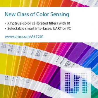 ams、シニアマーケティングマネージャ、トム・グリフィスは次のようにコメントしています。「AS7261 JENCOLOR 三刺激センサは、シリコンカラーセンシング技術における飛躍的な一歩をあらわしています。安定性の高さと、シリコン干渉フィルタの明確な特徴を、洗練されたキャリブレーション機能に組み合わせることで、もっと大幅にコストのかかるデバイスに匹敵する正確さを実現する、カラー分析のための初のシステムオンチップを、プライスポイントで生み出すことができました」