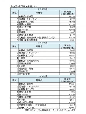 全国の法人の住所、電話番号、緯度経度等のリスト提供を行う「法人電話帳データ」を運営する株式会社ナビット(本社:東京都千代田区 代表取締役社長:福井泰代)は、2014年1月1日~2016年12月31日の直近3年間を対象に、「増えた業種、減った業種ベスト10」の調査結果を2017年5月10日に発表しました。