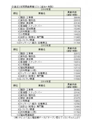 これは、新規開設も多く撤退も多い、流動性がもっとも高い業種を集計したものです。