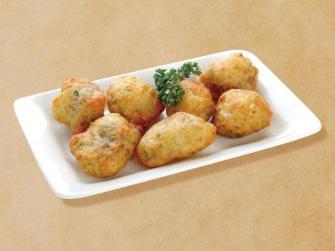 ■商品特徴:ぶつ切りにしたタコに青海苔を混ぜた衣を付けカラッと揚げました。風味豊かな磯の香りとタコの食感がたまりません。