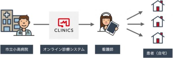 こうした背景を受けて、南相馬市は5月より、小高病院にて在宅医療を必要とする患者を対象としたオンライン診療を開始します。医師がオンライン診療による対応を可能と判断した場合に、看護師がタブレット端末を持ち患者宅に訪問し、医師はタブレット越しに診療を行います。
